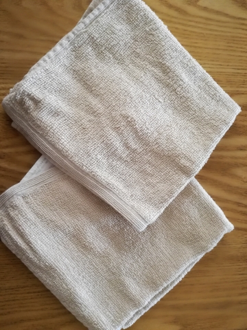 温湿布は、私の場合、ハンドタオルくらいの大きさのタオルを2枚用意して、、、