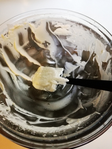 さらにさらに、生クリームは冷やしながら泡だて器で混ぜていくと